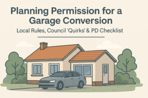 Do you need planning permission for a shed? This UK guide explains Permitted Development for outbuildings, height and coverage limits, the 2.5m boundary rule, front-garden restrictions, Article 4 and conservation-area quirks, plus Building Regulations triggers. Includes a practical PD checklist and local tips for Buckinghamshire, Milton Keynes and Guildford to avoid refusals.
